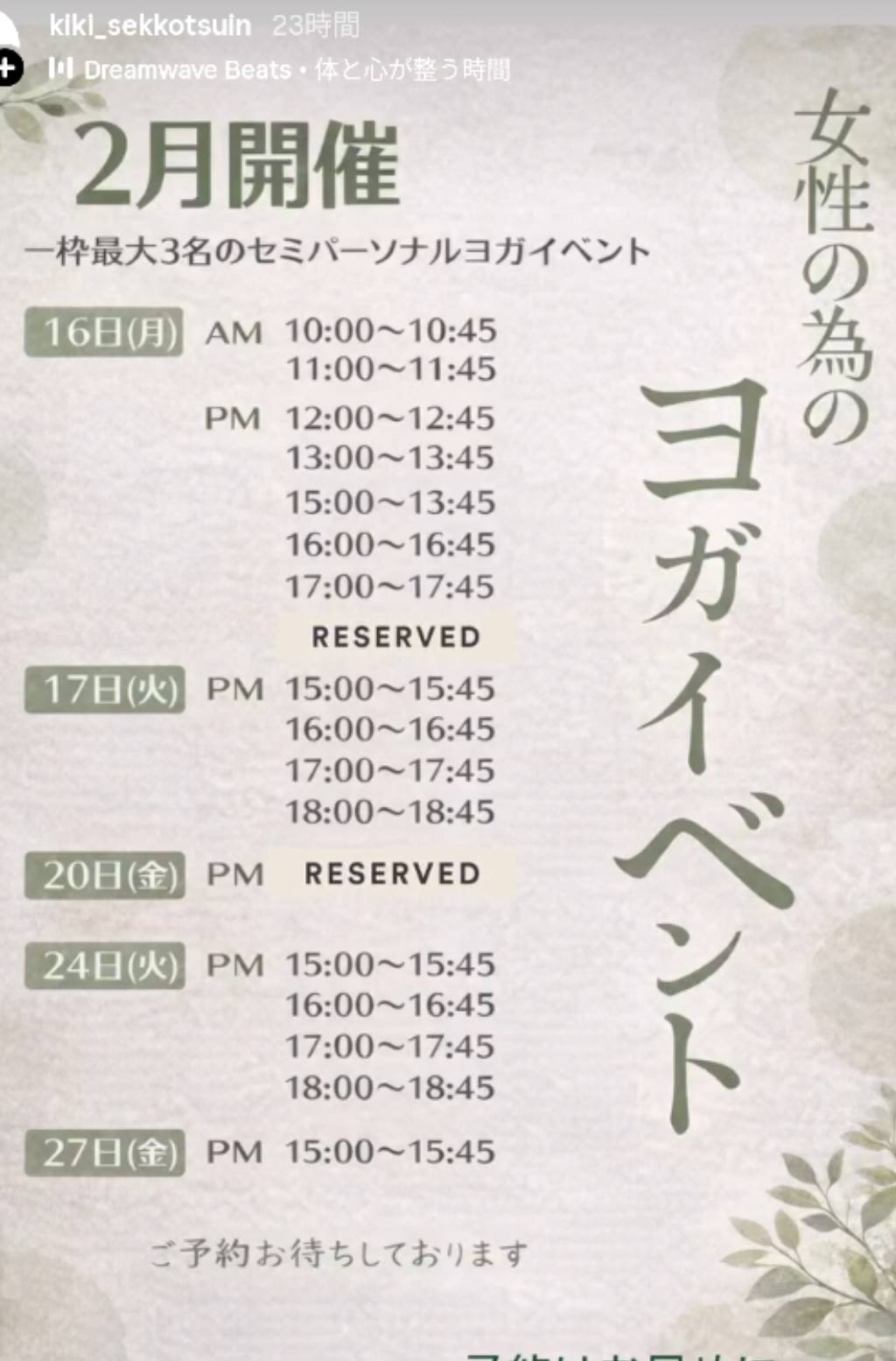 少人数・安心重視のヨガイベントを2月に開催することになりました。